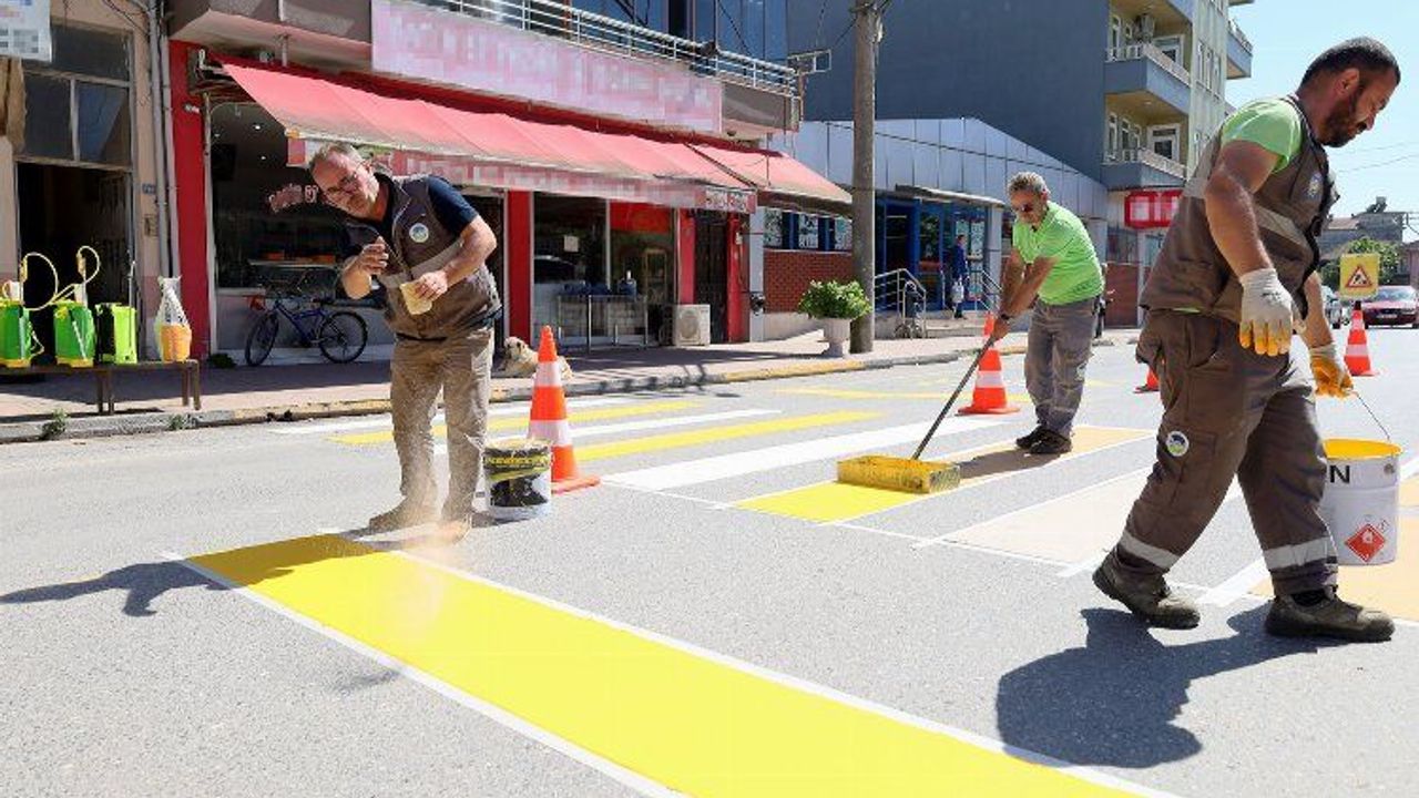 Sakarya Büyükşehir Belediyesi,şehir genelinde trafik akışını düzenlemek ve yaya güvenliğini artırmak amacıyla yoğun bir çalışma yürütüyor. Trafikte yaya önceliği için ‘önce yaya’ görselleri ile farkındalık oluşturuluyor.SAKARYA (İGFA) - Sakarya Büyükşehir Belediyesi yaya geçitlerinde vatandaşların güvenliği için ‘önce yaya’ çizgi uygulamalarını sürdürüyor.