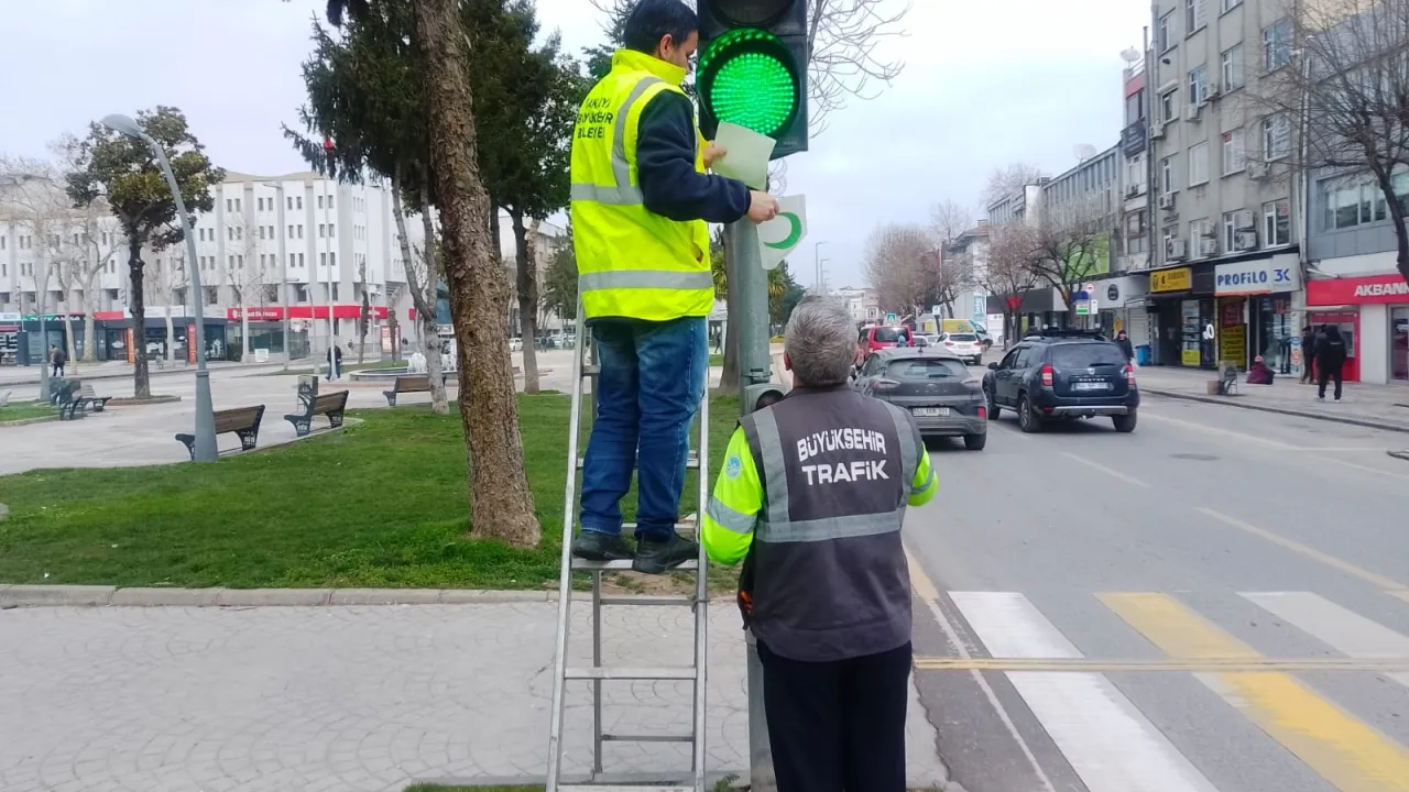 Sakarya Büyükşehir Belediyesi, 1-7 Mart Yeşilay Haftası kapsamında trafikte farkındalık oluşturmak amacıyla trafik ışıklarına yeşil hilal logosu yerleştirerek yaya ve sürücülerin dikkatini çekti.