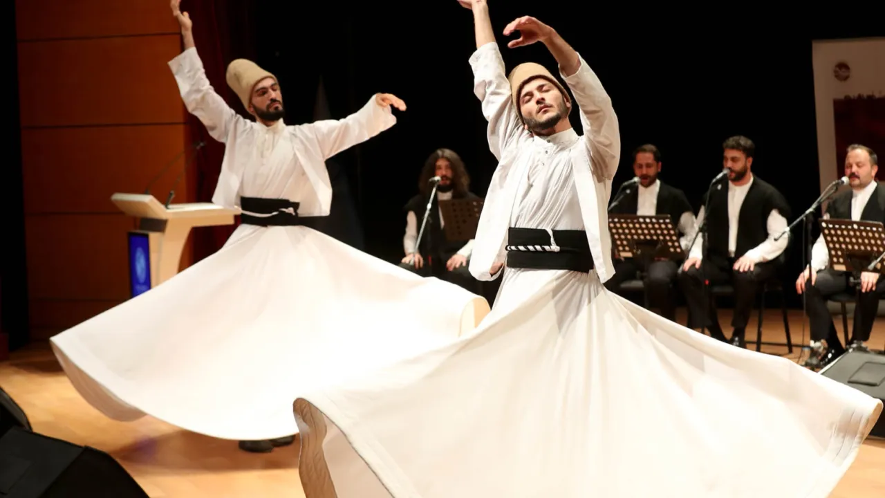 Sakarya Üniversitesi Devlet Konservatuvarı Tasavvuf Müziği Topluluğu’nun sahne aldığı programda, semazenlerin eşsiz performansı ve musikinin eşlik ettiği manevi atmosfer katılımcıları büyüledi.