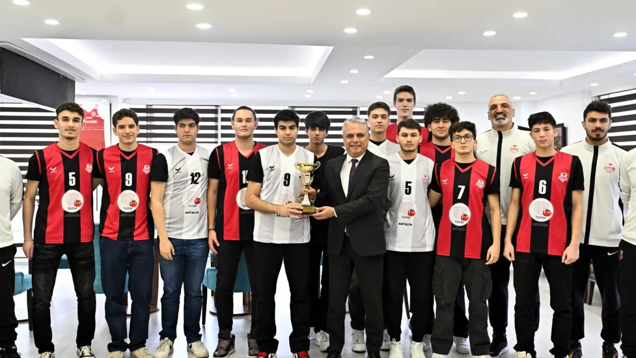 Antalya’da 2’ncilik elde ederek Bölge Şampiyonası’na katılmaya hak kazanan Muratpaşa Belediyespor’un U-18 Basketbol Takımı oyuncuları, Belediye Başkanı Ümit Uysal’ı makamında ziyaret etti.ANTALYA (İGFA) - Muratpaşa Belediyespor basketbol dalında başarılarını sürdürüyor.