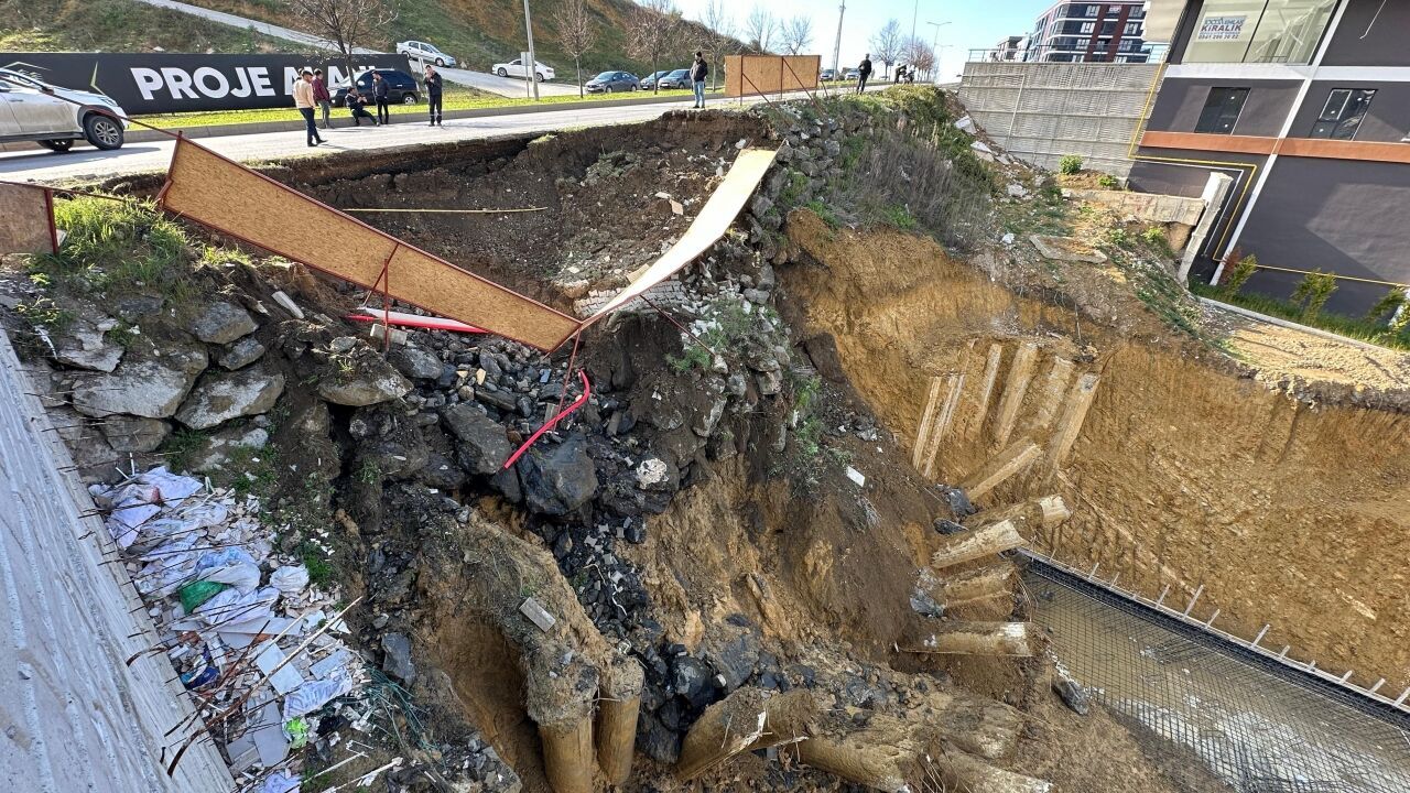 Yolda oluşan çökme nedeniyle inşaatın temeline doğru yaklaşık 10 metrelik toprak kayması oluştu.
