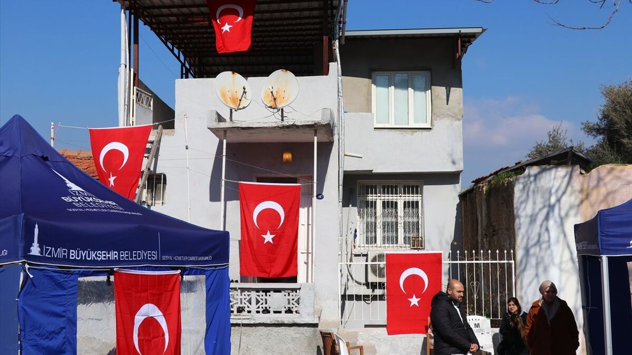 Evin önüne belediye ekiplerince taziye çadırı kuruldu, eve Türk bayrakları asıldı.