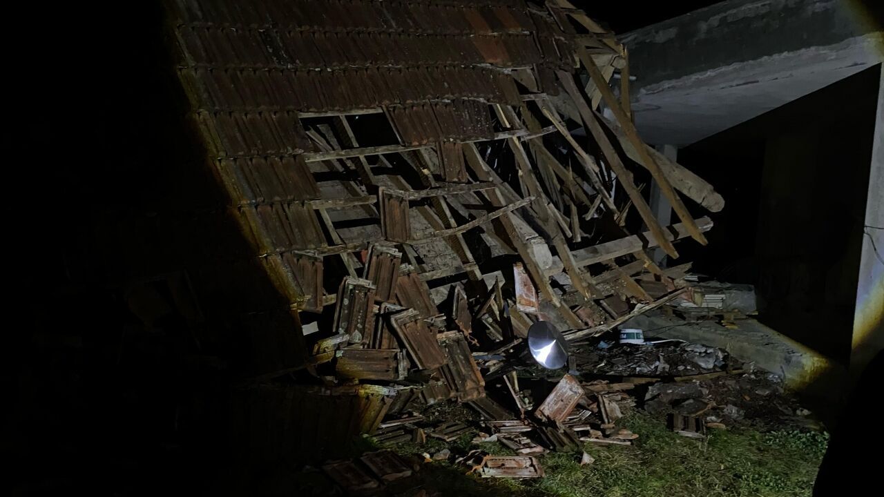 Zarar gören evlerden 2 kişiyi yaralı olarak çıkaran ekipler, mahsur kalanların kurtarılması için çalışmalarına devam ediyor.