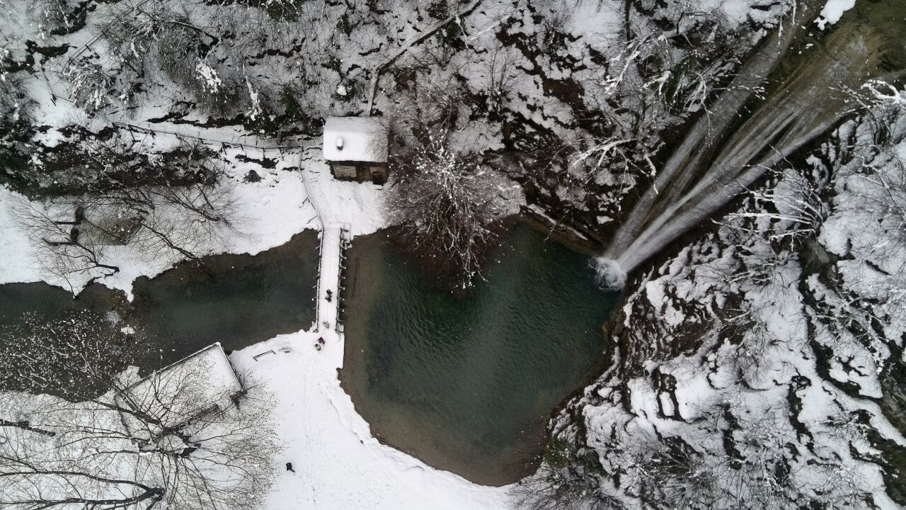 Bünyesinde bir kilometrelik iki farklı yürüyüş parkuru ve tarihi geçmişleri 100 yıla dayanan iki su değirmeni de bulunan şelale beyaz örtüsüyle ziyaretçilerini ağırlıyor.