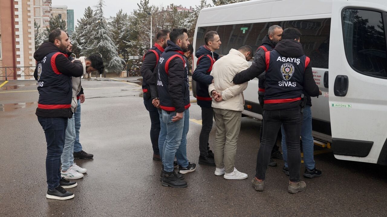 Sivas'a getirilen şüpheliler, emniyetteki işlemlerinin ardından Suşehri Adliyesi'ne sevk edildi.