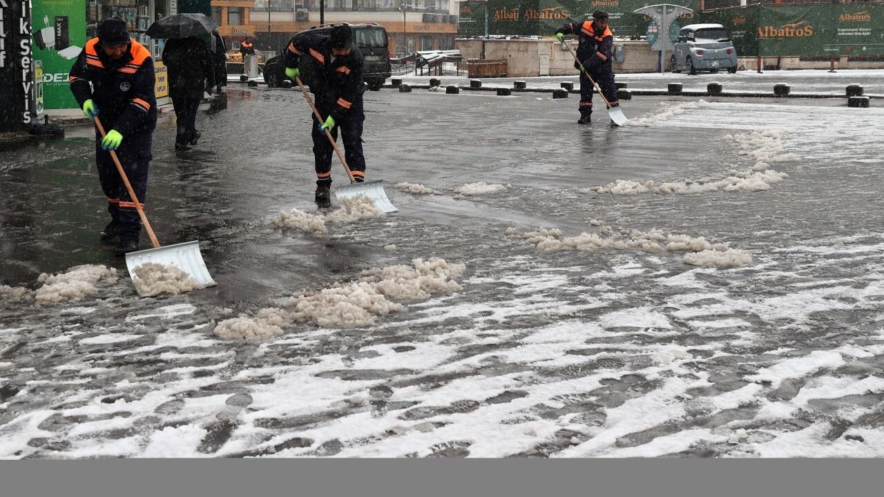 Belediye ekipleri kent merkezinde kar küreme çalışması yaparken, Karayolları ekipleri şehirler arası yollarda trafiğin aksamaması için çalışmalarını sürdürüyor.