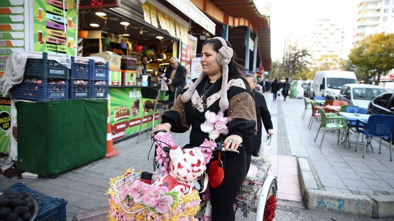 ADANA (AA) - SUDE ŞAHİNGÖKLÜ - Adana'da yaşayan 38 yaşındaki Hatice Kahya, işine çiçekler ve oyuncaklarla donattığı ve müzik eşliğinde kullandığı bisikletiyle gidip geliyor.