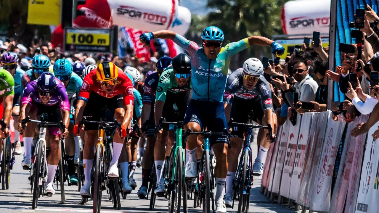 60.Cumhurbaşkanlığı Türkiye Bisiklet Turu'nun (Tour Of Türkiye) son gün koşulan 108,7 kilometrelik Çeşme-İzmir etabını Astana takımından Matteo Malucelli 2 saat 23 dakika 26 saniye ile kazandı. Bisikletçiler 8 gün boyunca bin 153 kilometre yol katettiler.İZMİR (İGFA) - 60.Cumhurbaşkanlığı Türkiye Bisiklet Turu'nun (Tour Of Türkiye) son gün koşulan 108,7 kilometrelik Çeşme-İzmir etabını Astana takımından Matteo Malucelli 2 saat 23 dakika 26 saniye ile kazandı. Finiş yine toplu halde gerçekleşti. Bariyer dibinden atak yapan Malucelli tekerlek farkı ile kazandı. 60.Cumhurbaşkanlığı Türkiye Bisiklet Tur'unda Türk sporcularından en iyi dereceyi Konya Büyükşehir Belediye Takımından Burak Abay Genel Ferdi klasmanda 64'üncü olarak elde etti.