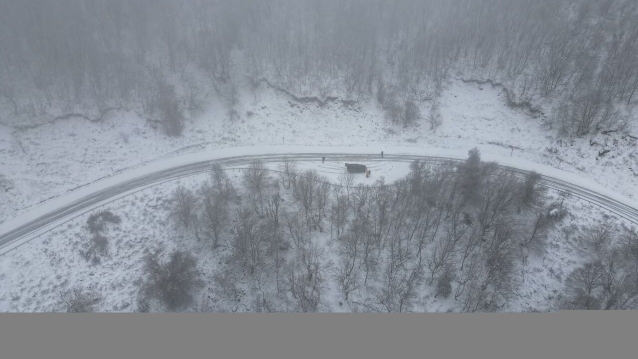 Kar yağışının ardından ilçedeki bazı ormanlık alanlar dron ile görüntülendi.