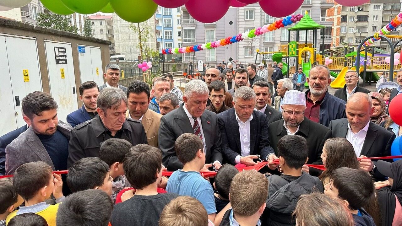 Sarıalioğlu, İlçe Müftüsü Ahmet Cebeci'nin dua etmesinin ardından, çocuklara kurdele keserek parkın açılışını gerçekleştirdi.