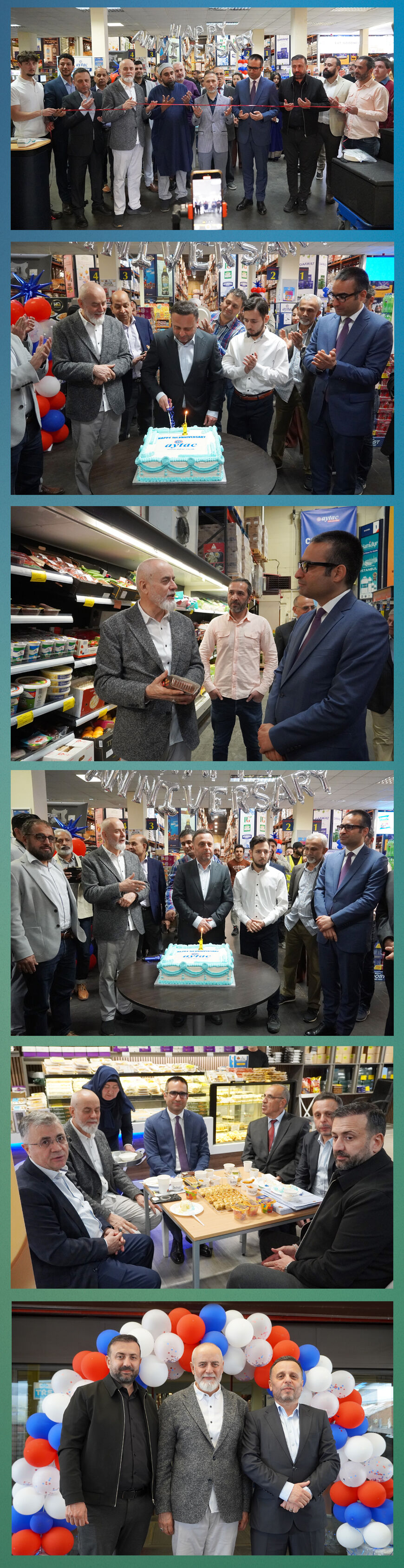 İngiltere Milli Görüş Camii imamı Murat Küçük’ün duasıyla yapılan açılış töreninde, kurdela kesimi Konsolos Turan Oğuzhan Gönültaş tarafından yapılırkan, pastayı Cemal Uğuz kesti.