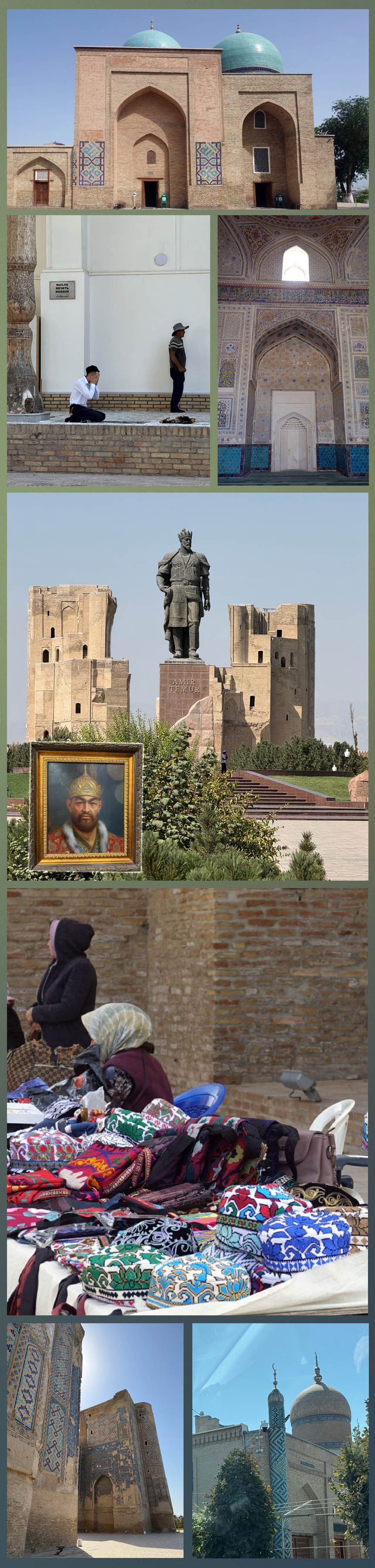 Gerçekten de nereye baksanız, Özbekistan’ın diğer şehirlerinde olduğu gibi, görkemli mimari eserler ve bir de Emir Timur anıtı karşınıza çıkıyor. Az ileride, duvarlarının bir kısmı yıkılmış olsa da, göğe doğru yükselen ve yapımı 25 yıl süren Ak-Saray’ın kalıntıları duruyor. Sağlı sollu o kadar çok tarihî, mimarî ve sanatsal yapı var ki, hangisine yönelmeniz gerektiğine karar veremiyorsunuz.