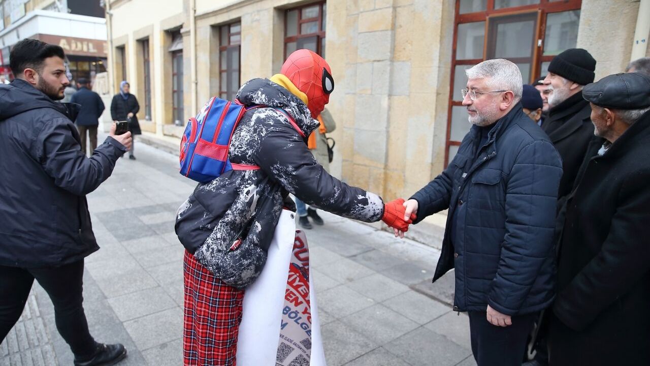 Kostümüyle dolaştığı Gazi Caddesi ve Hürriyet Meydanı çevresinde vatandaşların ilgisiyle karşılaşan Koç, burada çocuklarla sohbet etti, hatıra fotoğrafı çektirdi.