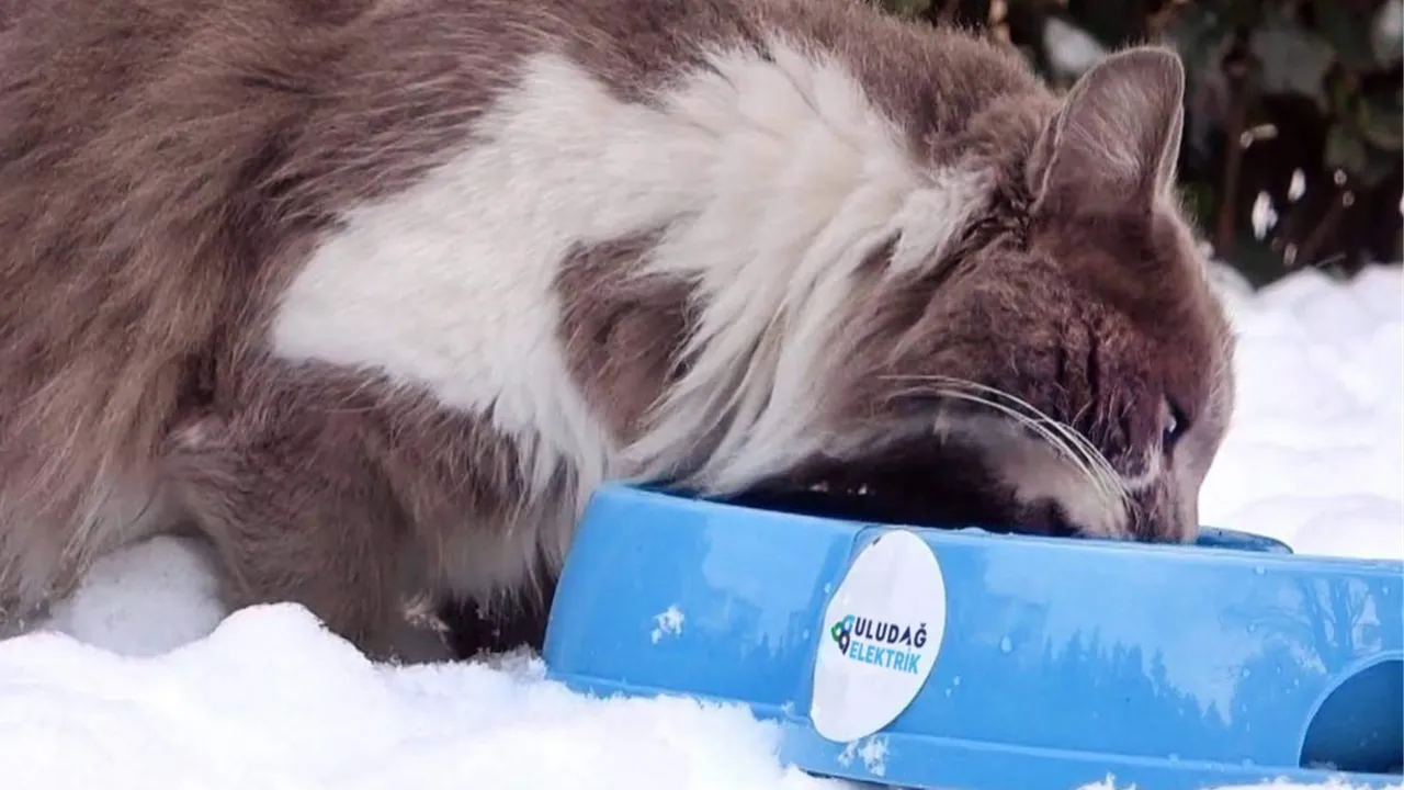 Uludağ Elektrik, kış aylarında etkisini iyice hissettiren soğuk havalar nedeniyle yiyecek bulmakta zorlanan sokak hayvanlarını mamasız ve susuz bırakmıyor.