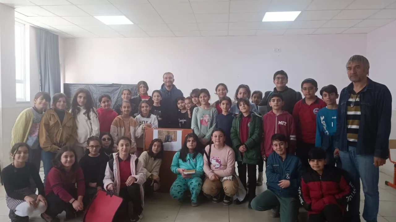 Yazar ve ressam Mehmet A. Başkurt, Mardin Şehit İlhan Varank İlk ve Ortaokulu’nda öğrencilerle bir araya geldi.Şehmus EDİS (MARDİN İGFA)
