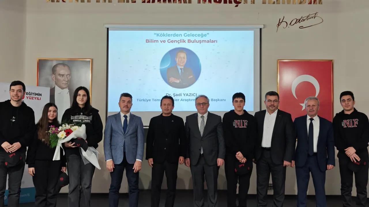 Bursa İl Millî Eğitim Müdürlüğü tarafından Türkiye Yüzyılı Maarif Modeli öncelikleri doğrultusunda gençlerin bilim, teknoloji, kültür, sanat ve felsefe alanlarında gelişimlerini desteklemeyi amaçlayan "Köklerden Geleceğe Bilim ve Gençlik Buluşmaları" etkinliği gerçekleştirildi.BURSA (İGFA) - Ettkinlik kapsamında, Türkiye Temel Bilimler Araştırma Vakfı Başkanı Dr. Şadi Yazıcı, “Türkiye’nin Geleceğinde Temel Bilimlerin Yeri” adlı sunumuyla Bursa Erkek Lisesi Konferans Salonunda lise öğrencileriyle bir araya geldi.